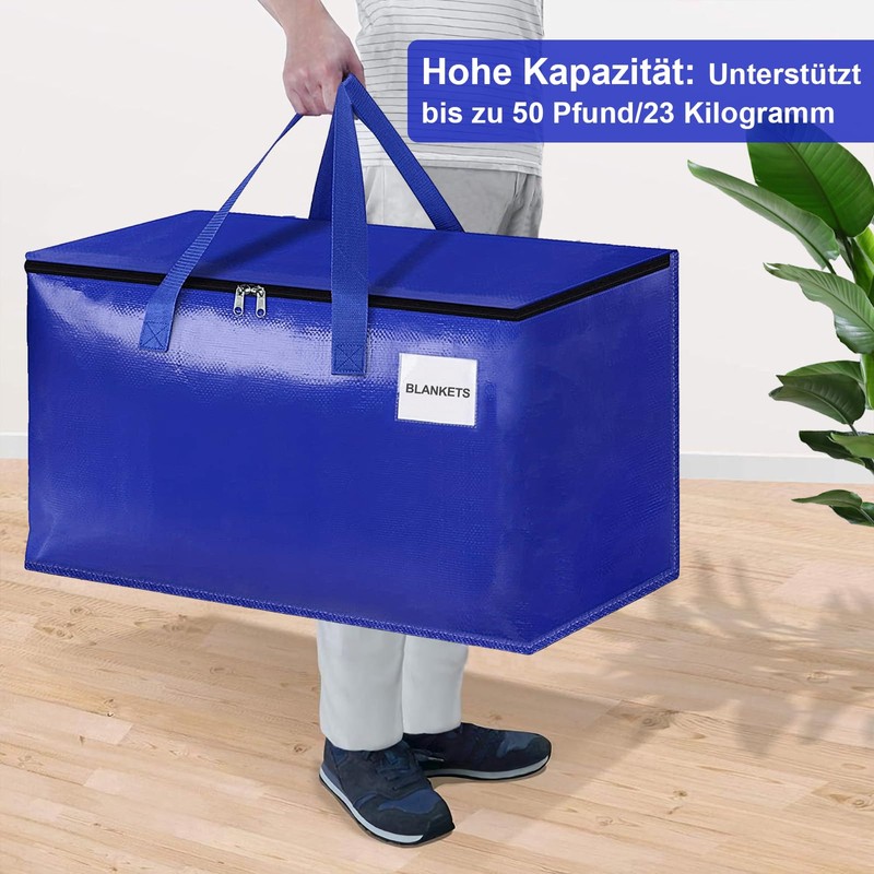 Figarge Pack of 2 Storage Bags with Zip and Labels 90 L Large Moving Bags for Moving Boxes, Storage, Travel, Camping, Garden Tools, Waterproof Moving Bags (Blue, Pack of 2)