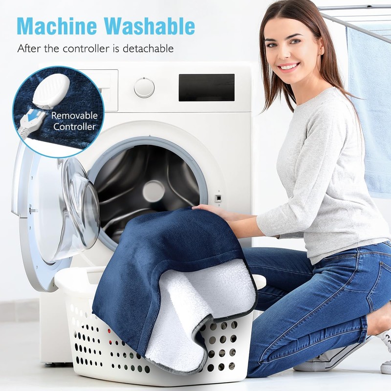- Cozy& Machine Washable-The 22" x 20" suitable size is enough to use and the pocket design protects your feet from cold air. Machine washable makes the electric foot warmer using more convenient.