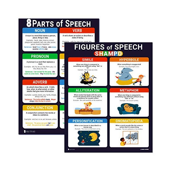 Figures and Parts of speech Grammar LAMINATED Posters 2 Pack (15x19) Young N Refined