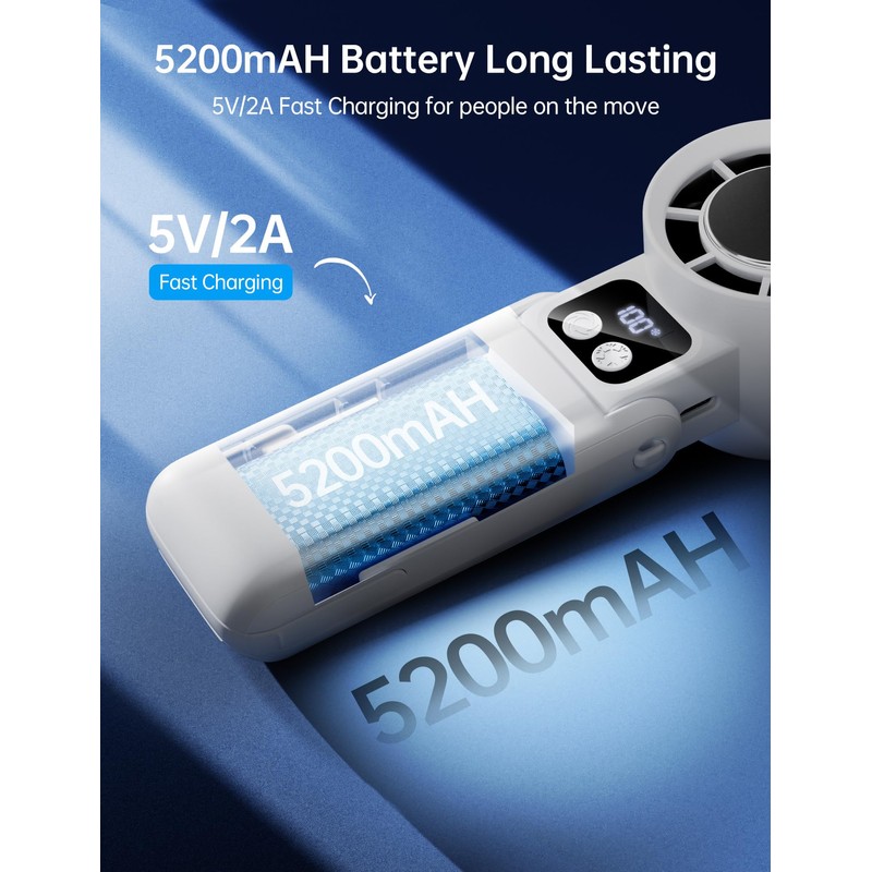 With a 5200mAh battery, this fan outlasts competitors—perfect for day-long outdoor events, road trips, or hot summer days. Recharge in just 2-3 hours via USB-C.