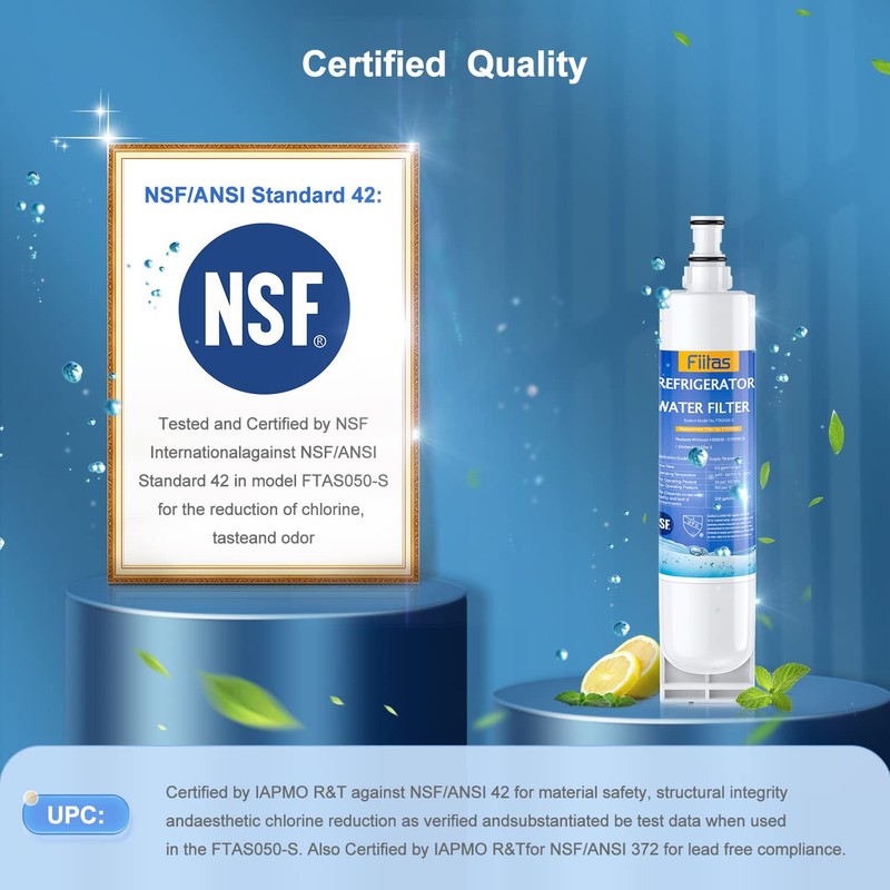 Fiitas 4396508 Water F ilter, Replacement for Whirlpool 4396510, EDR5RXD1, NLC240V, PNL240V, 4396508p, 4396547, 4392857, 9010, LC400V, WF-NLC240V, 46-9010, 3 PACK, WHITE BLUE (FTAS050)