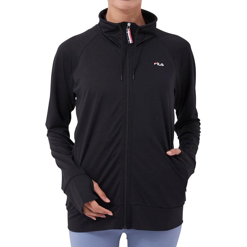 Fila 222063 Women's Rash Guard, Amphibious, Block Mesh, Stand Collar Jacket, Black