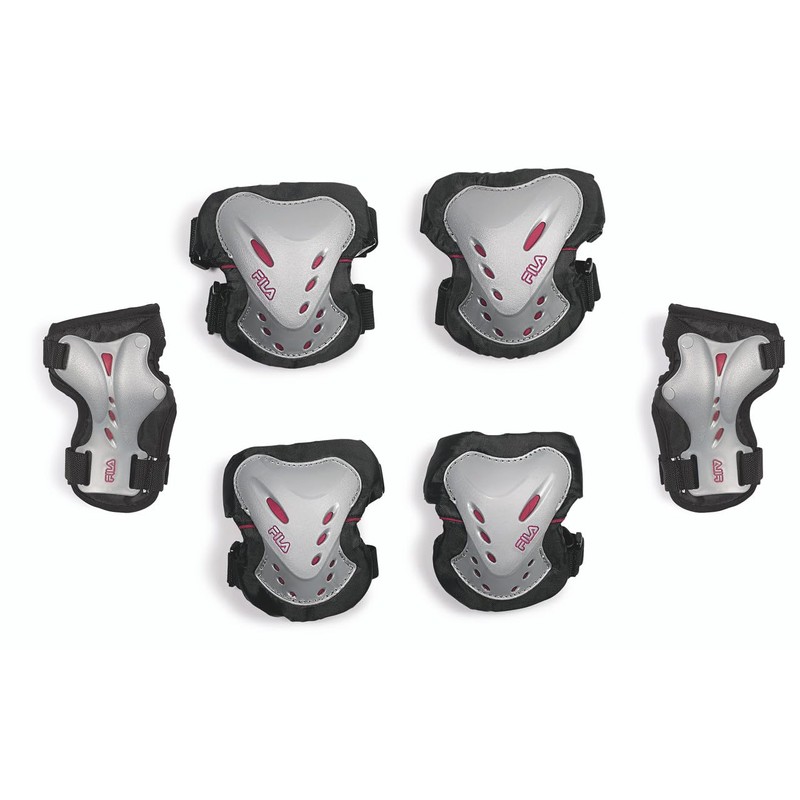 FILA Adult Protective Gear Tri-Pack - Wrist Guards, Knee Pads, Elbow Pads for Roller Skates & Inline Skates - Durable, Comfortable, Adjustable Fit for Skaters | Silver/Black/Magenta, Large