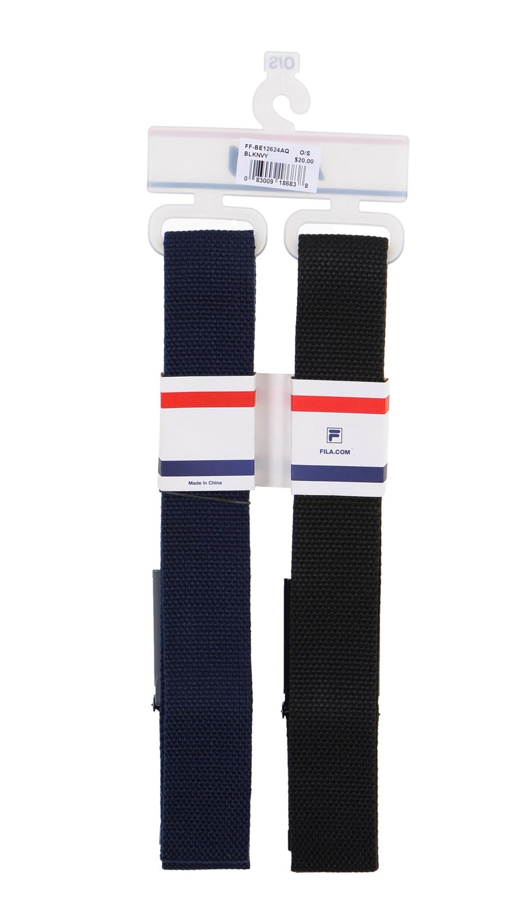 Stay stylish and comfortable with this FILA men's 2-in-1 web belt. Made from 100% durable polyester, this belt comes in two classic colors black and navy with a logoed buckle design. Adjustable and fits up to a 42" waist, making it a versatile choice for everyday wear.