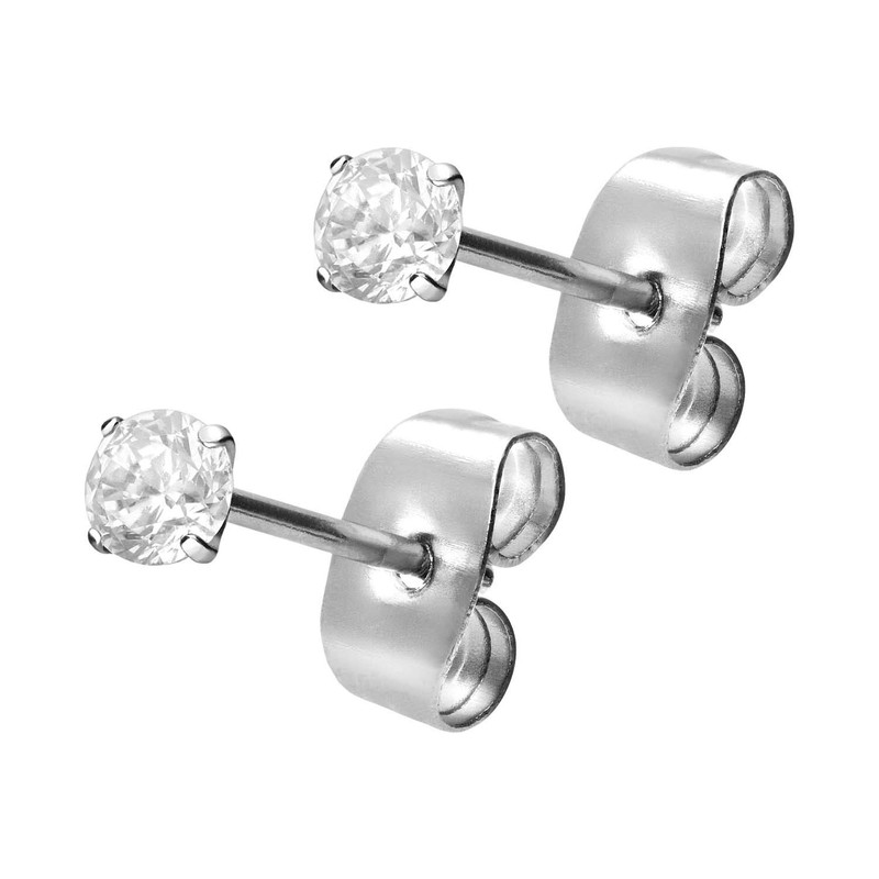 FILANGO 1 pair of surgical steel stud earrings, set crystal, choice of colours and sizes, 3mm crystal size, silver colours