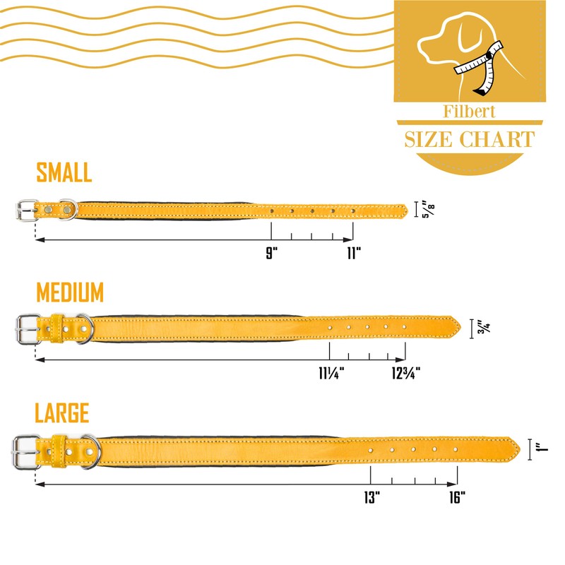 Filbert Leather Dog Collar, Genuine Leather Collar for Small Dogs, Premium, Luxury Padded, Strong, Adjustable for All Breeds, Heavy Metal Buckle, Ultra-Durable, Yellow