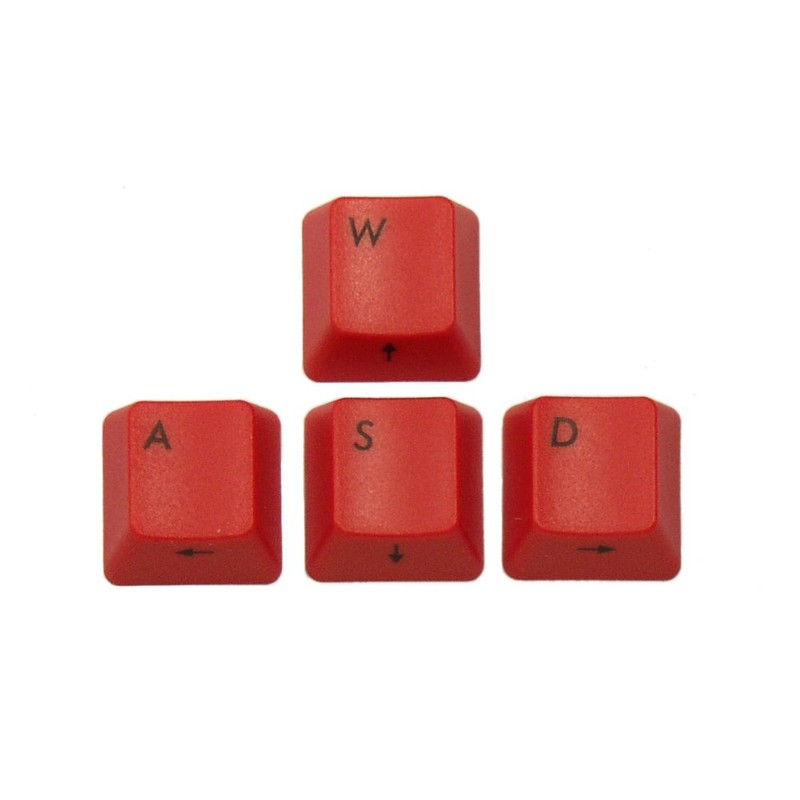 • Replacement red 'W', 'A', 'S' and 'D' keys designed for Filco Majestouch and Tenkeyless keyboards with Cherry switches, these keys will however fit all Cherry MX switches (they are slightly taller than the standard keys on a G80-3000 but have the same slope/angle to the key tops.)