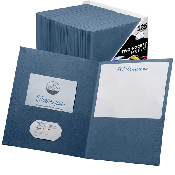 FILE-EZ Two-Pocket Folders, Dark Blue, 125-Pack, Textured Paper, Letter Size (EZ-32423)