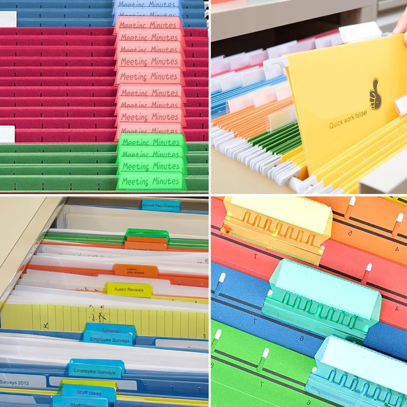 - Wide Application:File tabs suitable for home, office, archive room, library, collection room,etc.can be applied to files sorting and quick identification of hanging files