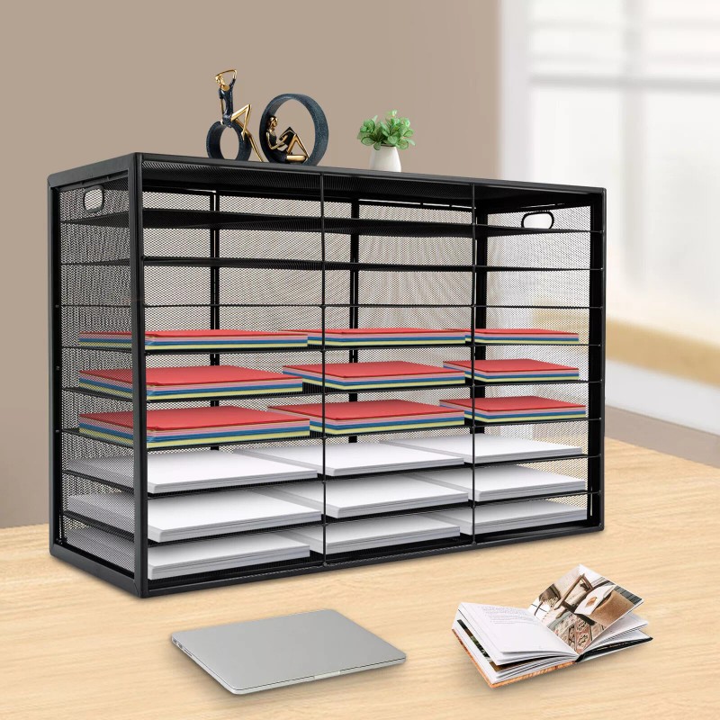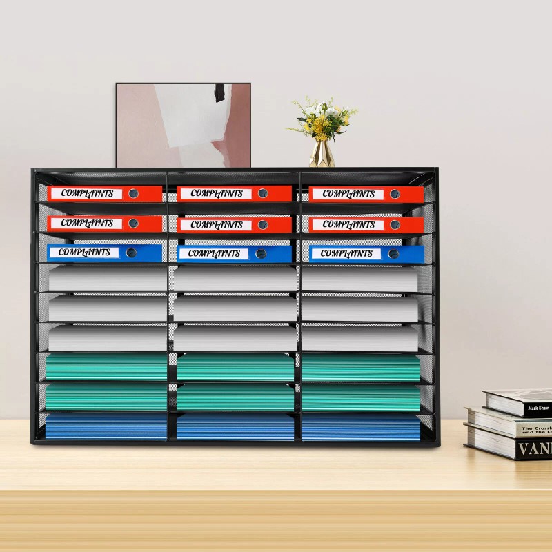 Are You Currently Experiencing a Problem of Having a Cluttered Desktop and Disorganized Files? It Can Be Frustrating and Hinder Your Work and Study Efficiency. This File Organizer Can Solve These Worries and Make Your Work Area Neater. It Has 27 Compartments and a Large Top Platform to Assist You in Decluttering Your Desktop. Its Timeless Black Line Design Matches Kinds of Office or Home Decoration Styles. Don't Wait Any Longer, Get One Now and Elevate Your Work Experience!