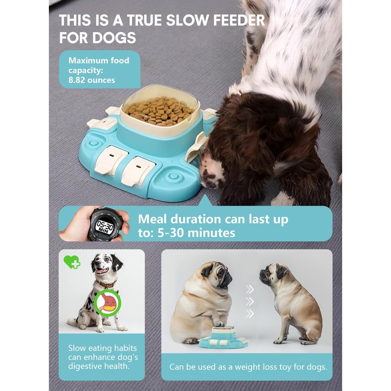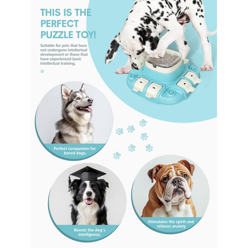 • Dog Puzzle Toys with Slow Feeder: This educational dog puzzle toy combines the benefits of a slow food bowl and a fun, interactive game. It helps to slow down your dog's eating speed, correct bad eating habits, and prevent choking, bloating, and indigestion, promoting healthier eating. Perfect for both small and large dogs, it helps develop good eating habits while providing mental stimulation.