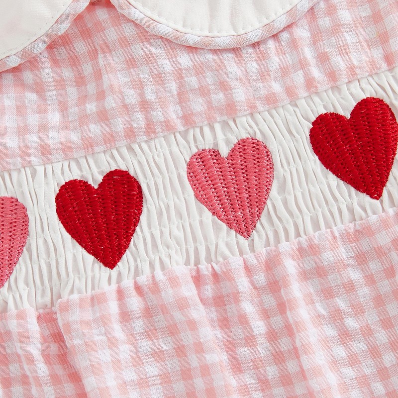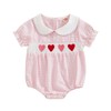 Filgriox Newborn Baby Girl Romper Bow Embroidery Peter Pan Collar Short Sleeve Bubble Bodysuit Summer Clothes (Heart Pink, 0-3 Months)