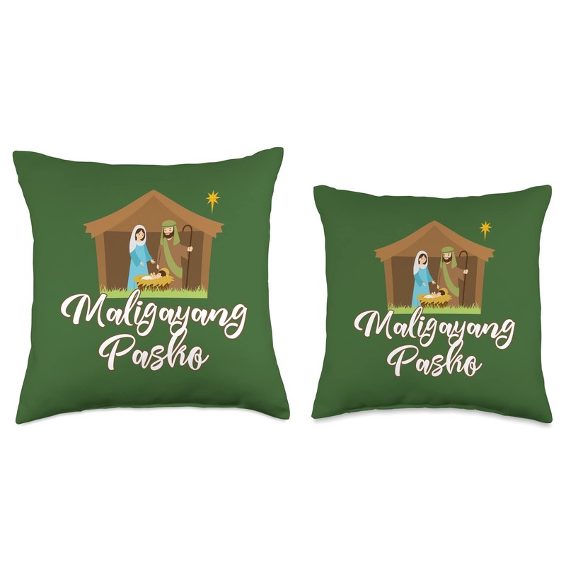 Filipino Christmas Family Maligayang Pasko Nativity Christmas Throw Pillow, 18x18, Multicolor