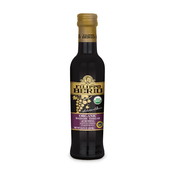 Filippo Berio Organic Balsamic Vinegar of Modena 8.4 fl. oz. Glass Bottle, Gluten Free, Lactose Free, Non-GMO