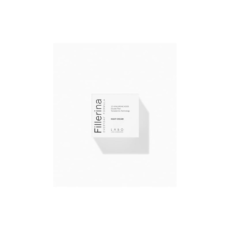 - Feuchtigkeitsspendende und auffüllende Nachtcreme, formuliert mit den transdermalen aktiven Molekülen der Intensivbehandlung Fillerina in Konzentrationen, die für den täglichen Gebrauch geeignet sind. Verleiht der Haut Geschmeidigkeit und Ausstrahlung. Mit 12 Molekülen Iauloronsäure unterschiedlicher Molekulargewicht.