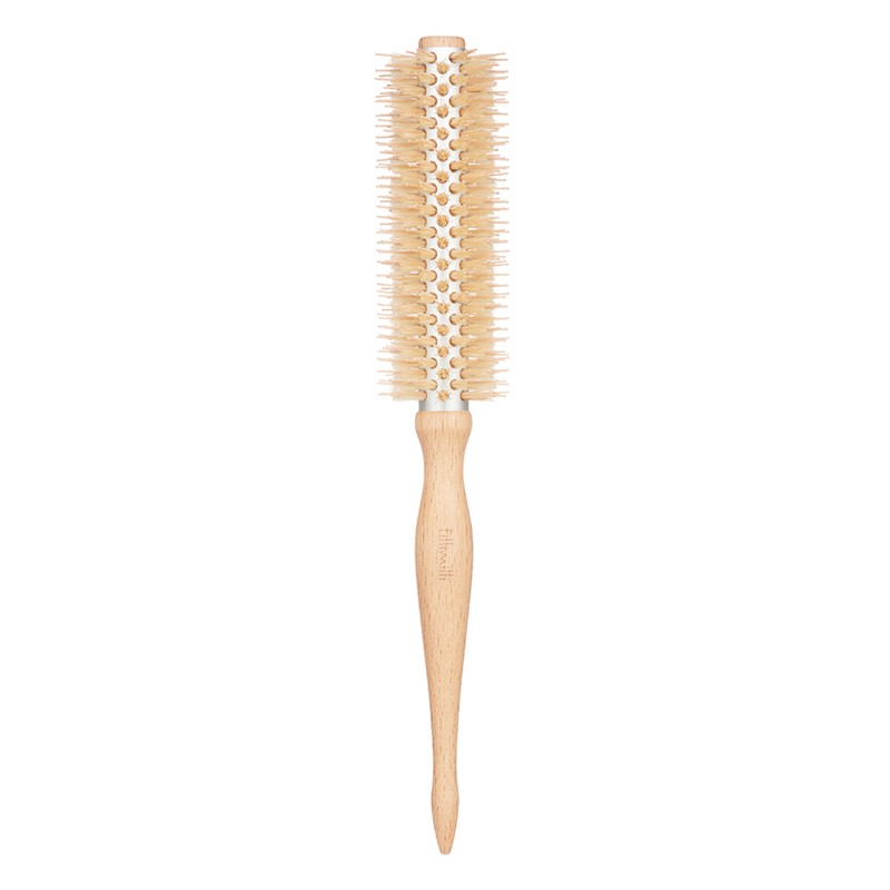 This brush features an aluminum-coated barrel to distribute heat evenly and indirectly while preventing damage to hair. The ergonomic wooden handle offers non-slip grip.
