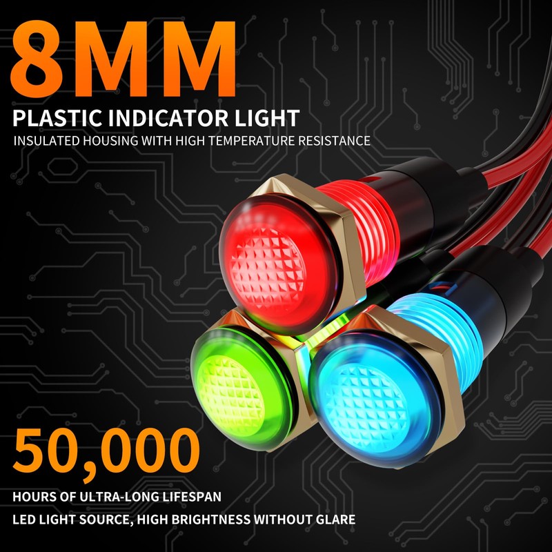 - [Features] The indicator light carries UL certification, utilising a new-generation design and durable plastic materials to ensure longevity and maximum strength, suitable for long-term use. Convenient wiring: This indicator light comes with a PVC wire marked for polarity, featuring robust flame-retardant wiring.