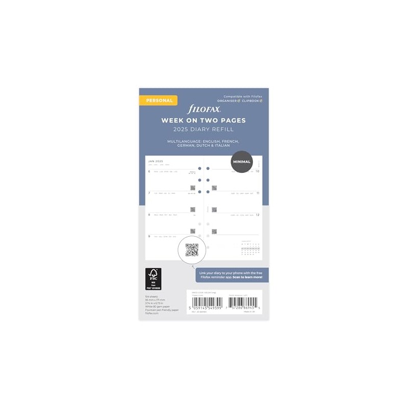 - Filofax Persoanl Minimal WTV Diary Refill Pack 2025