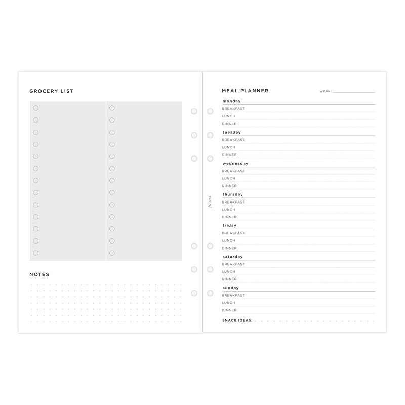 Stick to grocery budgets and plan delicious recipes in our Meal Planner refill, designed for your A5 size Filofax organiser or Clipbook. This refill pack has 56 sheets of white 80gsm paper. Not suitable for the Filofax refillable notebook.