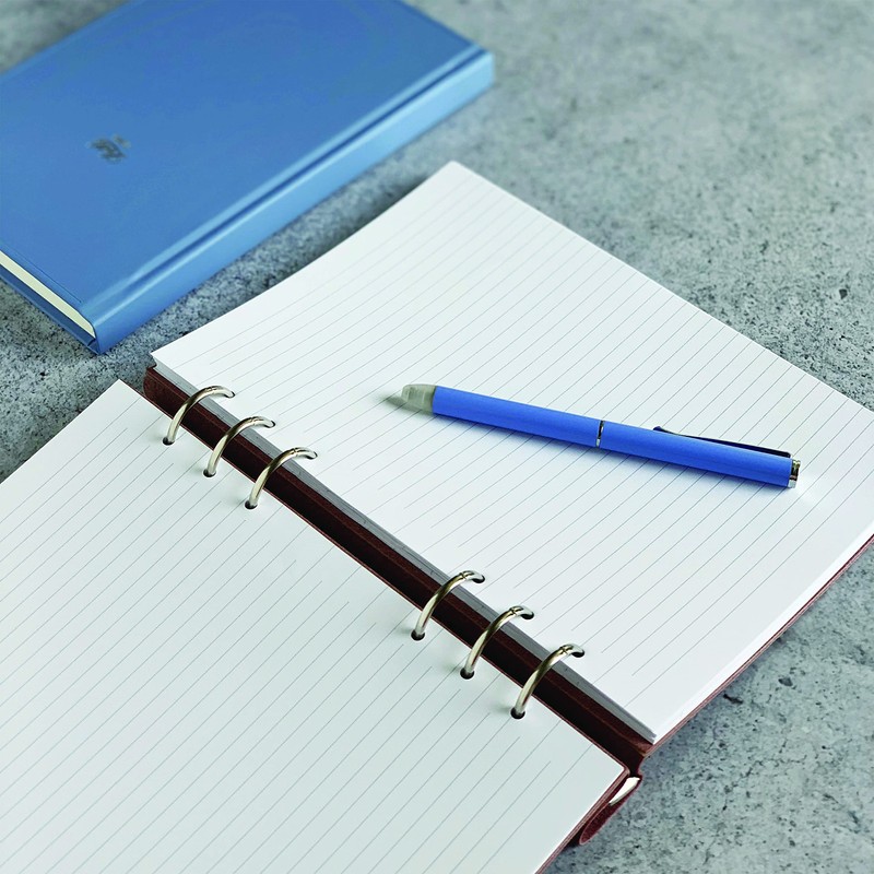 - Cover folds back a full 360 degrees and lies flat for a sturdy writing surface. Expands and shrinks as pages are added and removed.