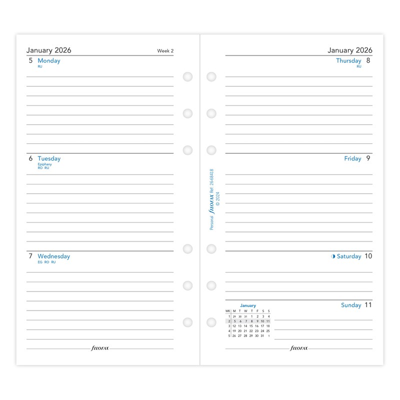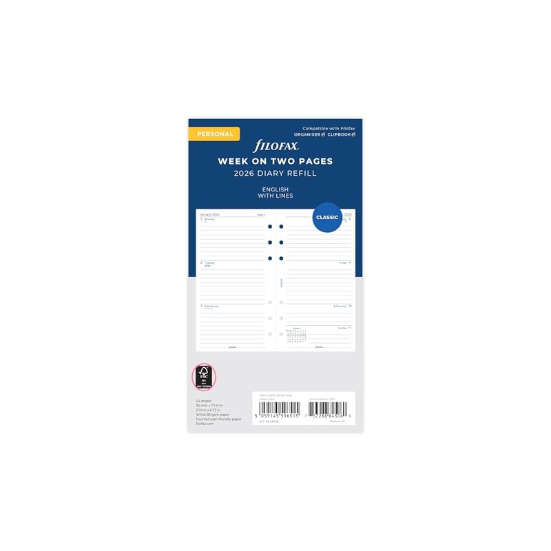 Filofax Personal week on two pages English lined 2026 diary 26-68418