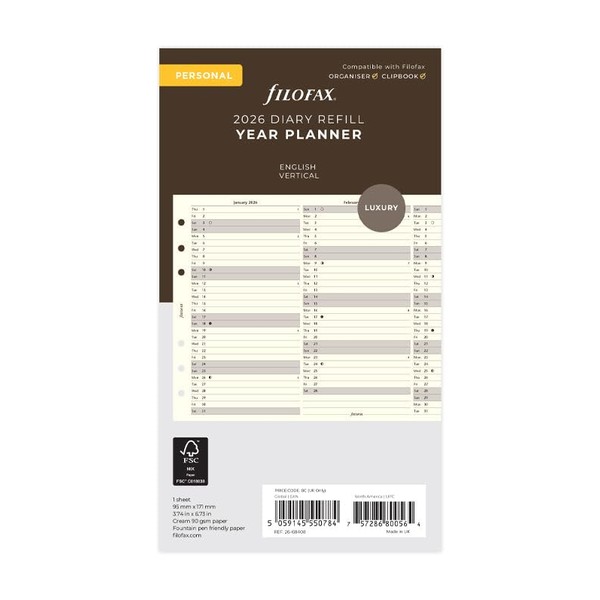 Filofax Personal Yearly Plan, Cotton Cr.(E)2026