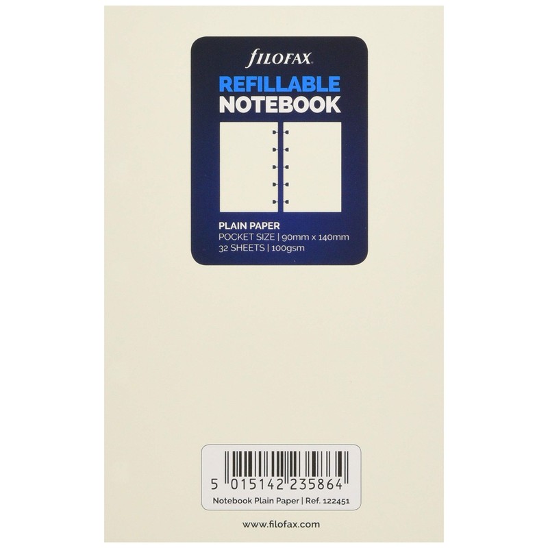 Filofax Pocket Plain Notes for Refillable Notebook - White