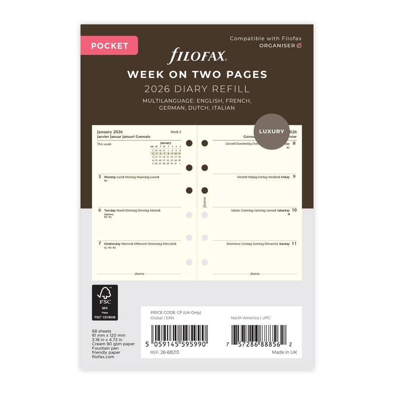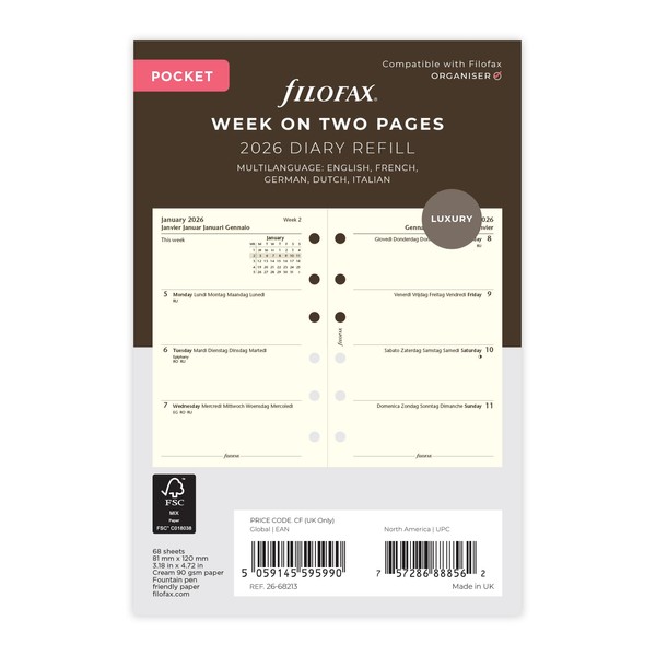 - Filofax Pocket 2026 diary refill