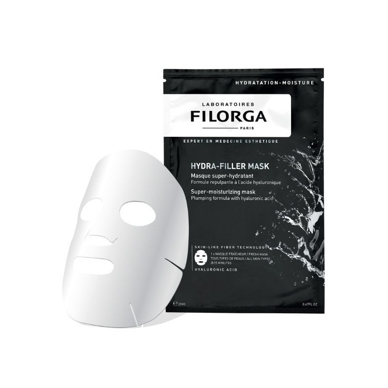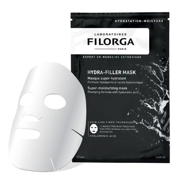 Filorga Hydra Filler Mask has the power of a serum concentrated in a mask with a second-skin effect, for moisturized and visibly plumped skin in 15 minutes.