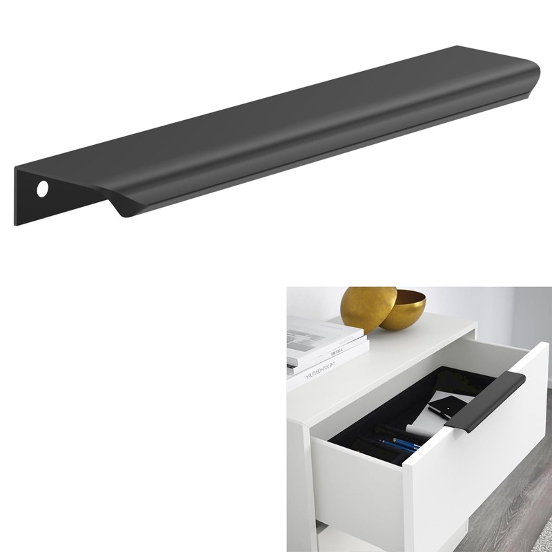 FILTA 10 Pack Matte Black 7.5 Inch(192mm) Hole Center Kitchen Cabinet Handles,9.8 Inch(250mm) Overall Length Edge Finger Tab Pull for cabinets Kitchen Concealed Drawer pulls