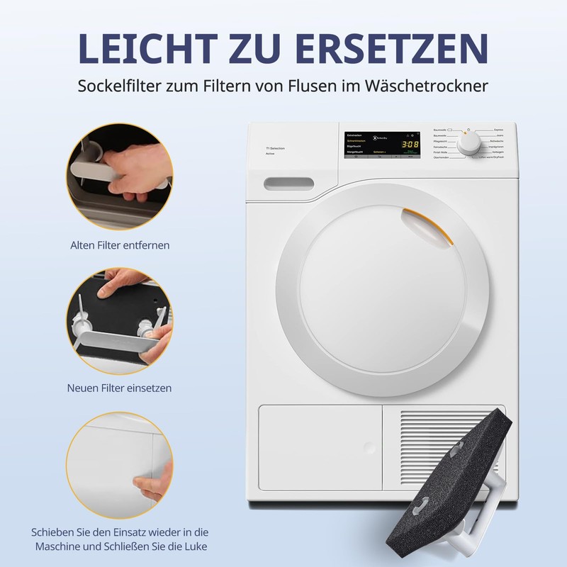 - Fine/coarse double layer design: the filter for Miele is made of high-quality filter sponge, consists of thick and thin foams, fine filter is used to filter fine dust, small particles and coarse filter for filtering strong dirt, thick lint. The two-layer structure ensures that impurities are optimally filtered out, ensuring high performance and low energy consumption in your dryer.