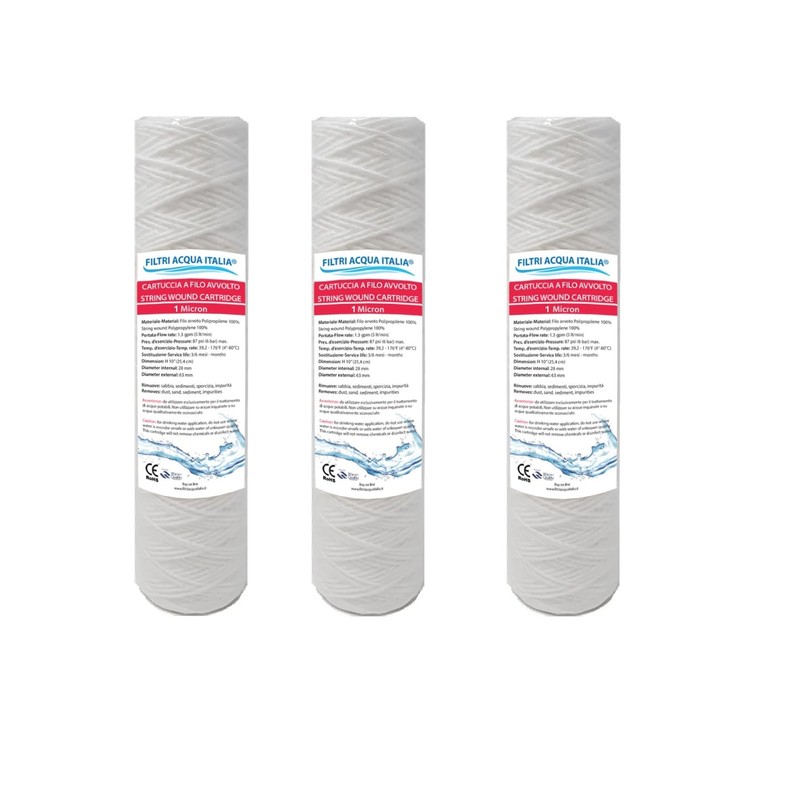 - Thread Wrapped Cartridge with Polypropylene Sediment 10" Micron 1 Set 3 Pieces