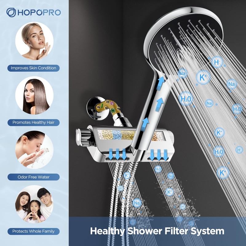 - Dual Shower Head Combo Filtered System: This HOPOPRO Dual shower head with handheld combines high pressure,filtration and body massage in one package. Consists of a body massage shower head and a handheld shower head, with 11 different modes to suit your preferences,You can use them separately or together, depending on your needs. Nurture your hair and body with this HOPOPRO filtered Showerhead system with handheld combo.