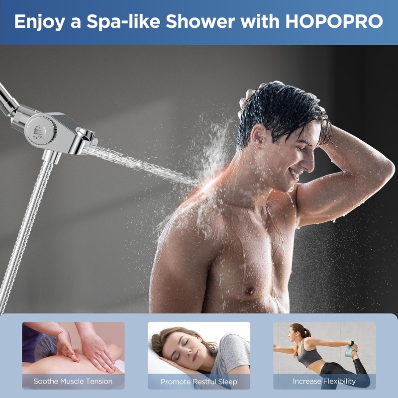 - Spa Experience in the Comfort of Your Home: Feeling stressed and tired after work? HOPOPRO innovative body massage shower head is designed to provide a relaxing and invigorating spa-like experience, you can have body massage sprays aimed at your shoulders or back while the hand held shower head is aimed at your head or face, helping to relieve muscle tension in the neck, shoulders,back,and provide relaxation.
