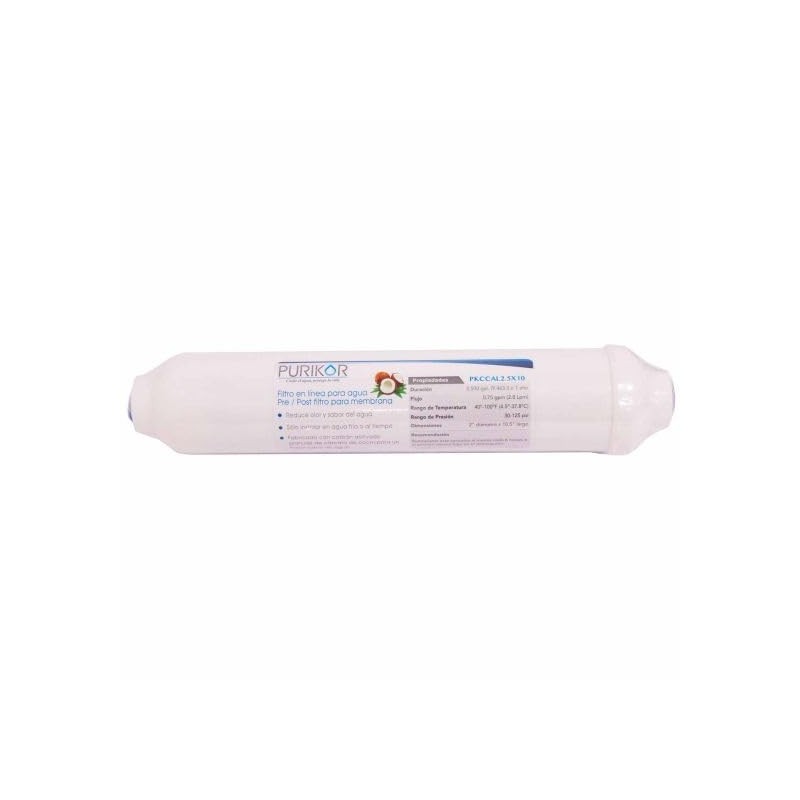Filtro carbon activado granular en linea. PURIKOR. PKCCAL2.5X10