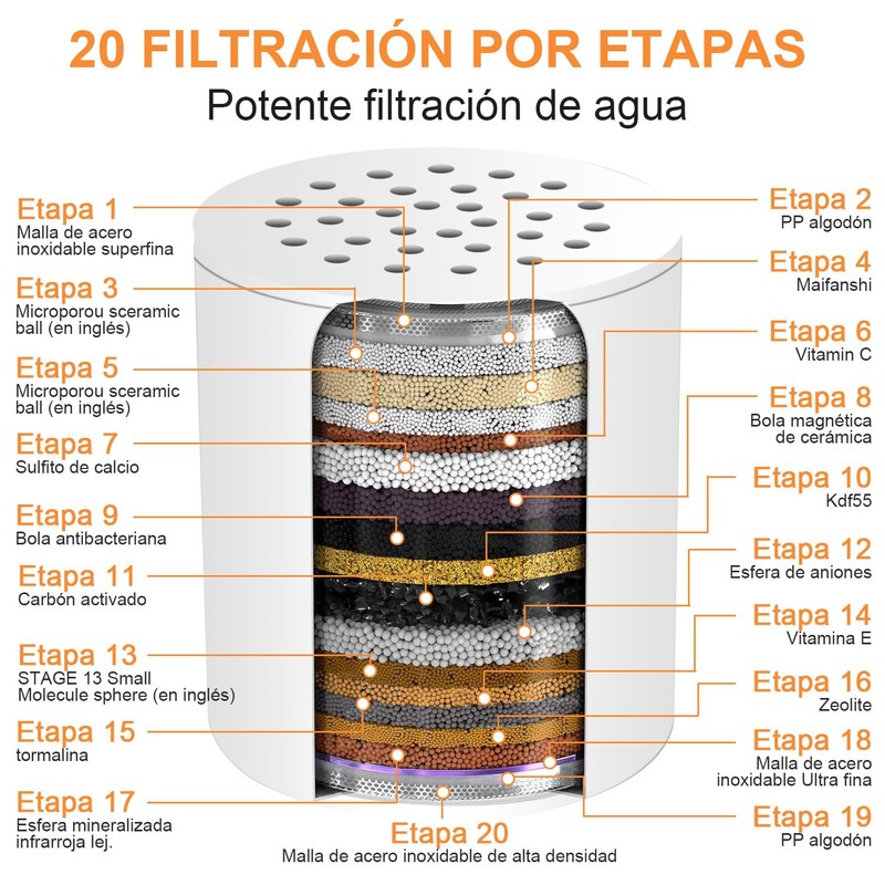 - ✨【CUIDADO PREMIUM】Tu cuerpo merece agua fresca, sin químicos y sin olores. Nuestro filtro de ducha con 20 etapas de máxima filtración hace que la piel sea más suave, las uñas más fuertes y el cabello más brillante. Además, cuida de tus hijos y mascotas, haciéndoles disfrutar de baños agradables y seguros, manteniendo la eczema, piel seca y caspa a raya.