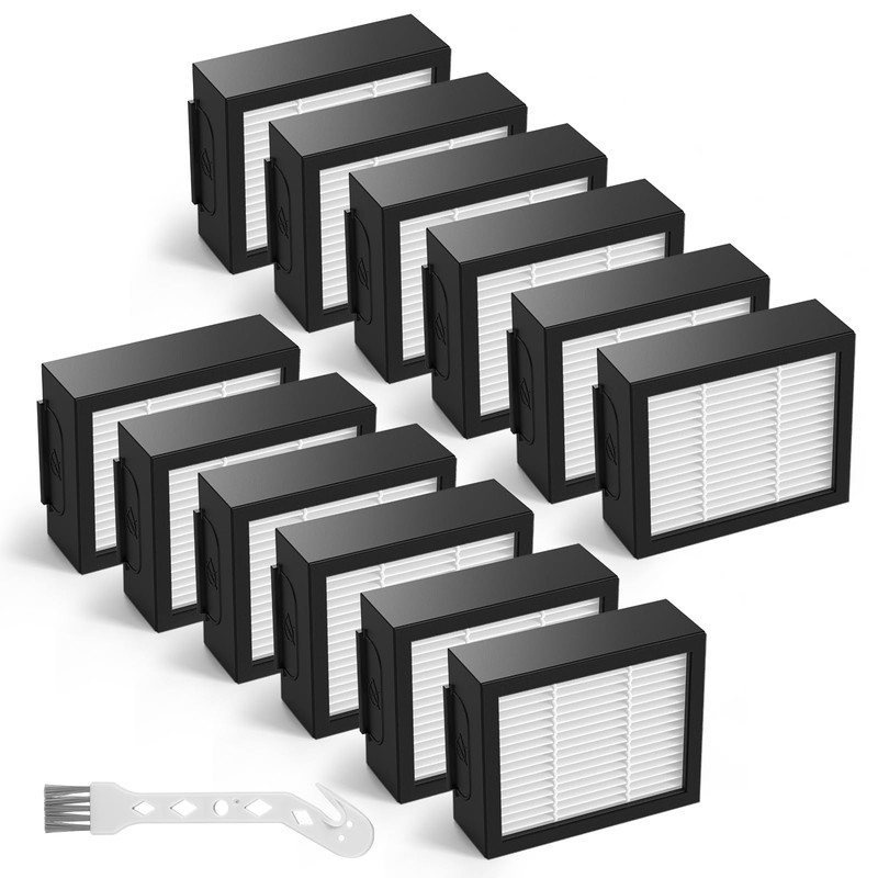 Filtros de repuesto compatibles con i-Robo't Roomba E I & J Series i7 i7+/plus i3 i3+ i4 i6 i6+ i8 i8+ E5 E6 E7 Robot aspirador, paquete de 12 filtros HEPA 4639161 de alta eficiencia + 1 cepillo para polvo de limpieza