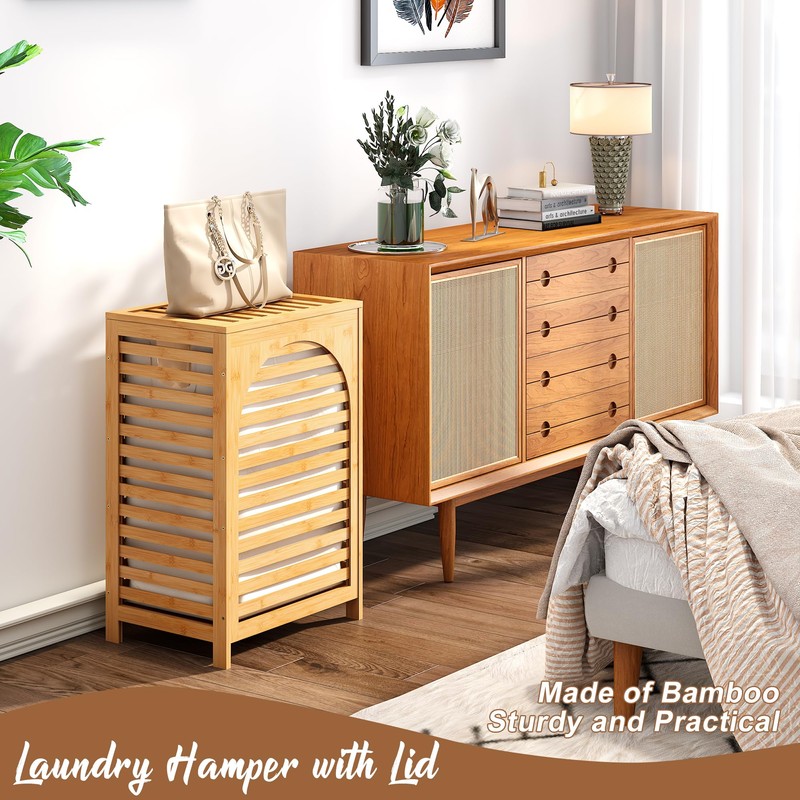 FILWH Laundry Hamper with Lid (16.9 * 13 * 26.5inches) Large Bamboo Laundry Bin Basket 85L Clothes Hamper with 1 Removable Bag Storage baskets for Bathroom(Natural)