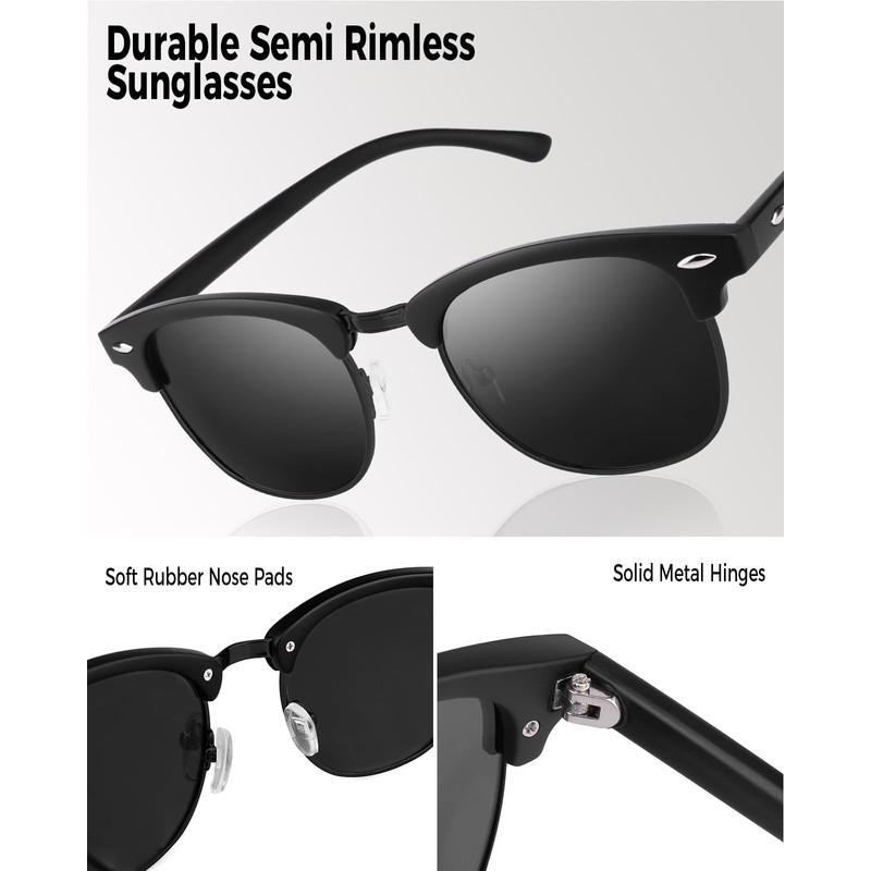 - CLASSIC SEMI FRAME DESIGN MENS SUNGLASSES: Polarized sunglasses men women are designed with retro semi elements and are always favored by trendsetters. FIMOSON polarized sunglasses men is excellent choice for you at any outdoor activities such as driving, fishing, hiking, cycling or any water sports to wear