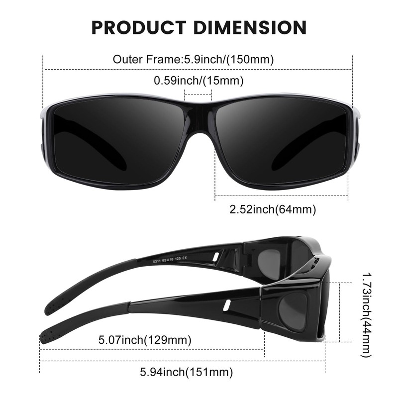 - HD POLARIZED UV400 LENSES SUNGLASSES OVER GLASSES: FIMOSON over glasses sunglasses for men women polarized UV400 TAC lenses provide 100% UV protection, blocking harmful UVA, UVB and UVC rays, effectively reducing glare reflected from roads, bodies of water, snow and other water surfaces, lowering the risk of reflected and scattered light to the eyes, restoring true colors, and improving visual comfort