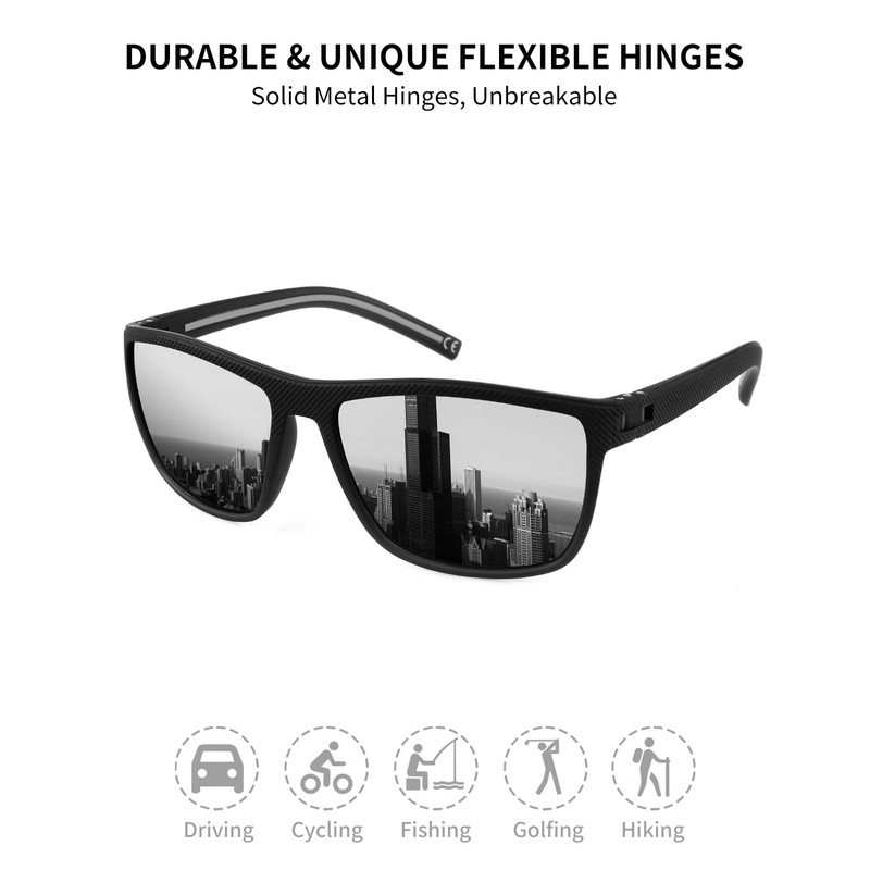 - CLASSIC SQUARE FRAME DESIGN MENS SUNGLASSES: Polarized sunglasses men women are designed with retro square elements and are always favored by trendsetters. FIMOSON polarized sunglasses men is excellent choice for you at any outdoor activities such as driving, fishing, hiking, cycling or any water sports to wear