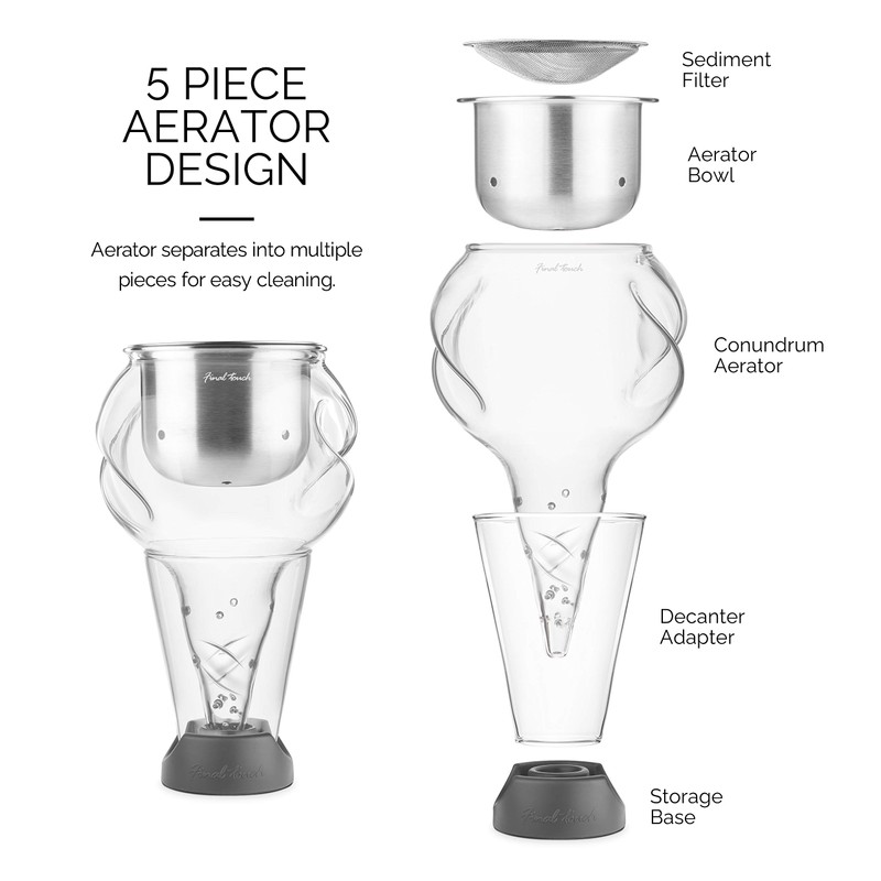 - Includes: Glass Conundrum Aerator, Stainless Steel Aerator Bowl & Stainless Steel Filter
