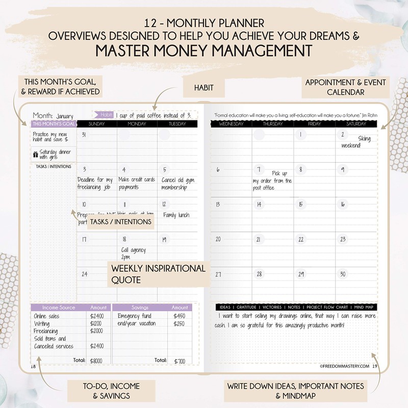 Financial Planner & Monthly Budget Planner and Monthly Bill Organizer - 12 Month Journey to Financial Freedom, Monthly Budget Book Planner | Much More Than Just a Budgeting Planner or Finance Planner