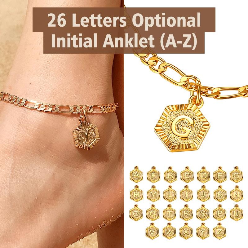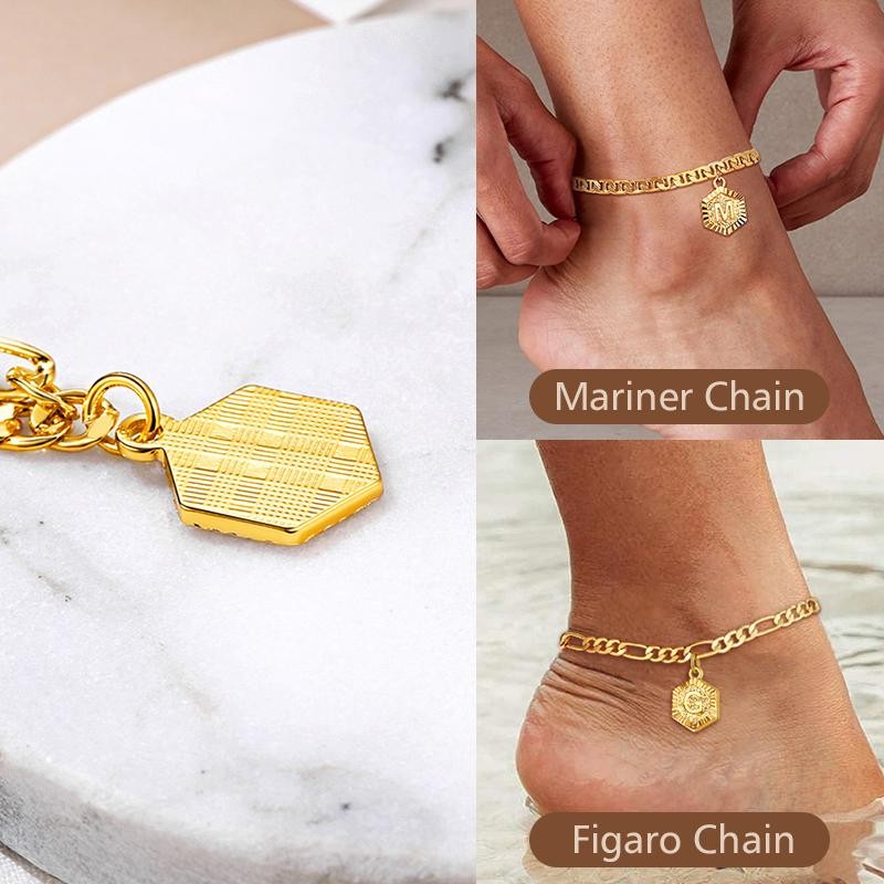FindChic Initial 26 Letters A-Z Anklet Gold-plated 5mm Chain Anklets Bracelet with Letters Mariner Chain Figaro Chain Anklet Adjustable For Women Men Girlfriend Bubble Letter - Style: Mariner Chain, Letter: K