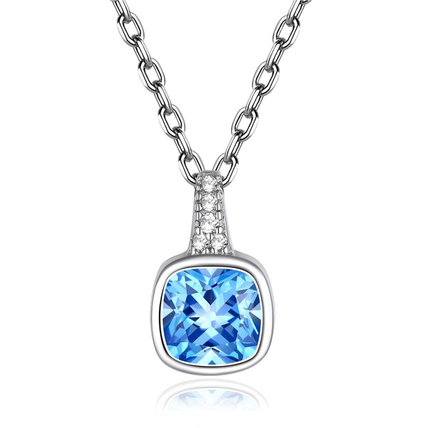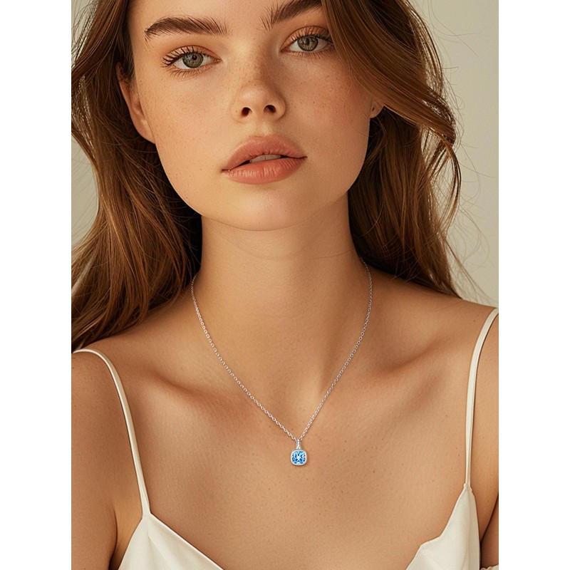 FindChic Silver Necklace for Women March Birthstone Necklace for Women Sterling Silver Small Square Pendant Fake Diamond Jewelry Gift for Her Girlfriend