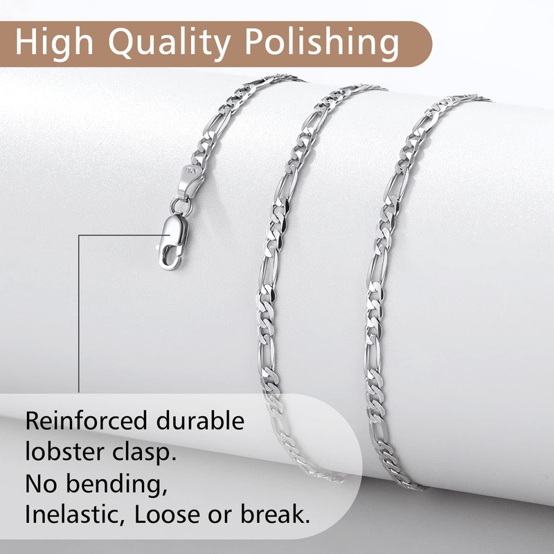 - Genuine Silver-Made of authentic 925 sterling silver, each clasp of the figaro chain is stamped with a 925 mark