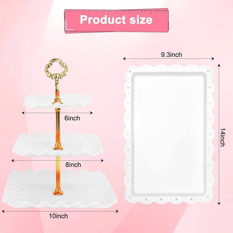 - Perfect for all events: Whether it's a wedding, tea party, small gathering, or any special occasion, our dessert stands with dessert trays for dessert table combo comes in handy, ensuring you have everything you require to make your dessert table stands eye-catching and beautiful, treat stands for dessert table set
