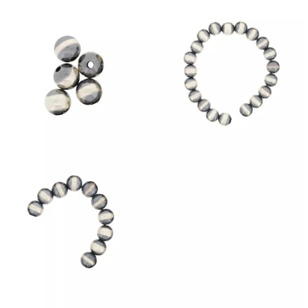 35 Sterling Silver Round Navajo Beads 5 10mm, 20 4mm, 10 7mm35 Sterling Silver Navajo Beads - 5 10mm Beads, 20 4mm, 10 7mm Diameter Unlock your creativity with our exquisite Sterling Silver Navajo Beads. Handcrafted in the USA with precision, these beads blend traditional Navajo heritage with contemporary elegance. Crafted from high-quality sterling silver, these beads are lead and nickel-free, making them safe for all wearers. Each bead is a masterpiece of artisanal excellence, reflecting meticulous handcrafting and attention to detail. Versatile and adaptable, these beads elevate your jewelry designs with a touch of Native American tradition. Create unique pieces that stand the test of time and tell a story of beauty and culture. Choose our Sterling Silver Navajo Beads to enhance your creations and let your imagination soar.