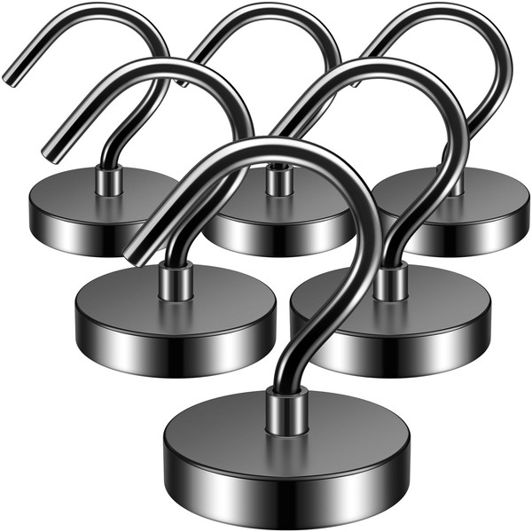 FINDMAG 6 Pack Magnetic Hooks, Black, 60 lbs Neodymium Magnetic Hooks, Magnet with Hooks, Extra Strong Magnetic Hooks for Camping, Magnetic Hooks with Strong Magnets for Cruise and Household