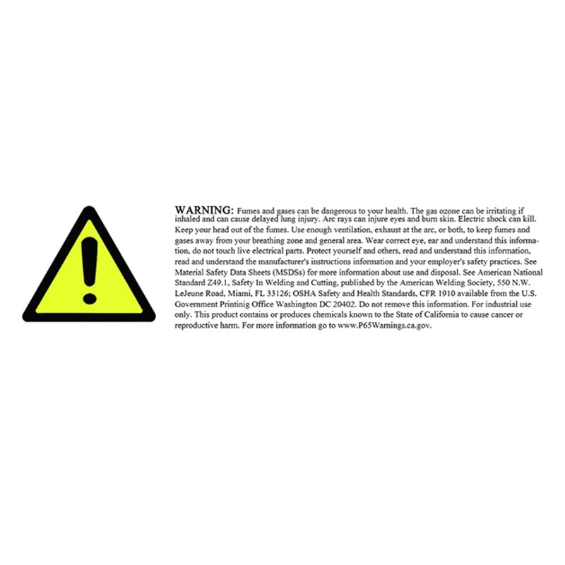 Gas produced during operation can be harmful to your health, arc rays can damage eyes and burn skin, and proper eye, ear, and body protection must be worn when using.